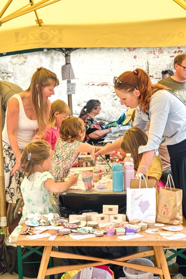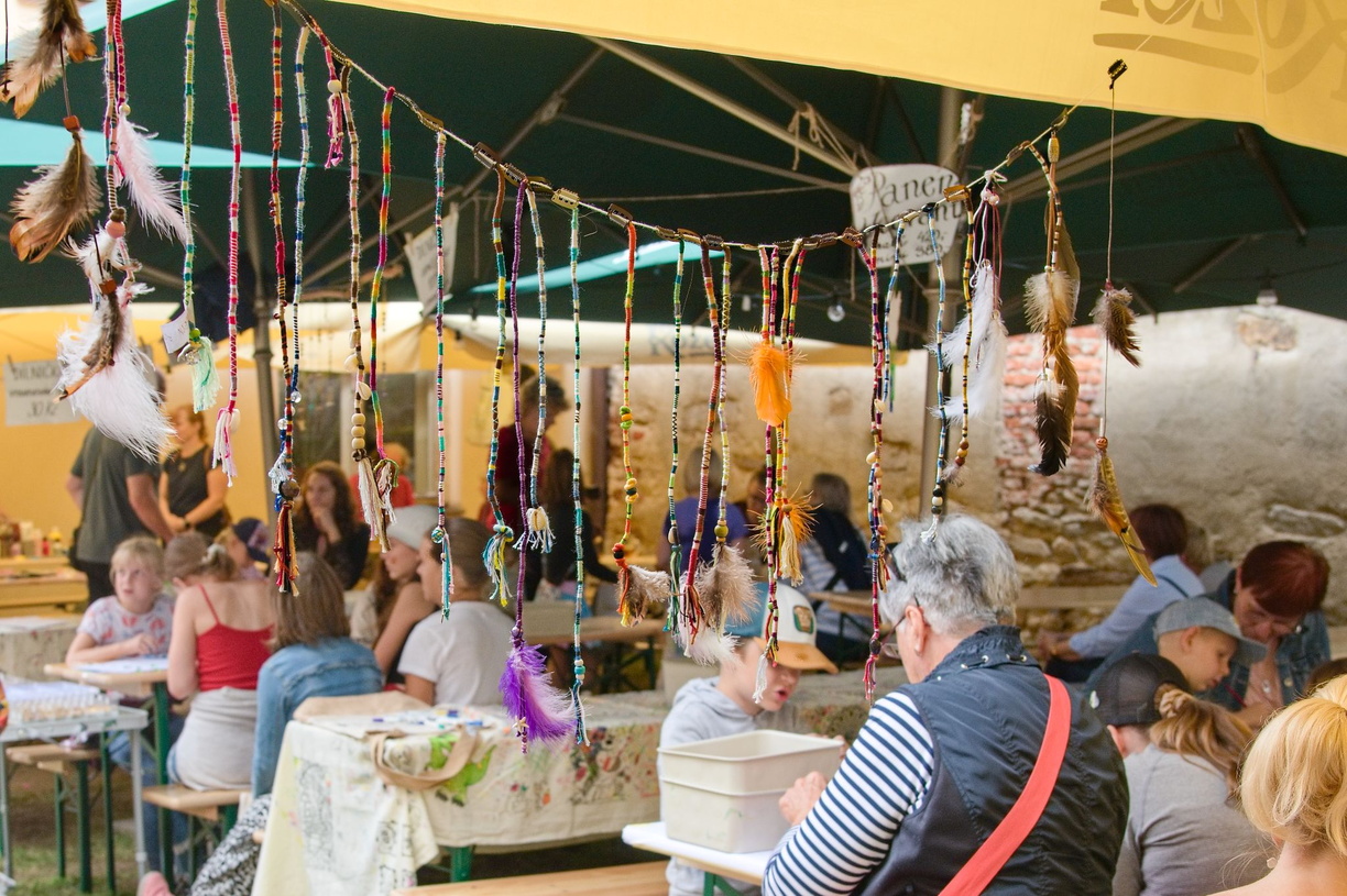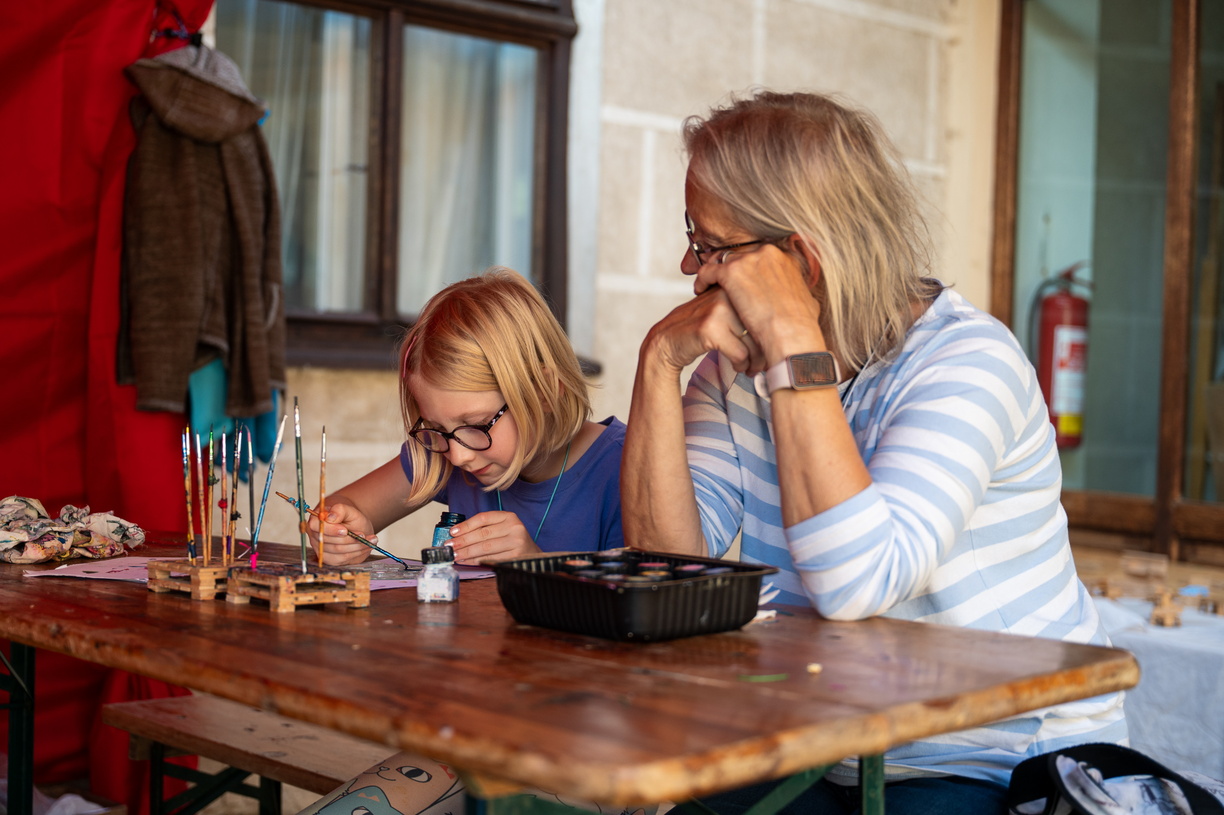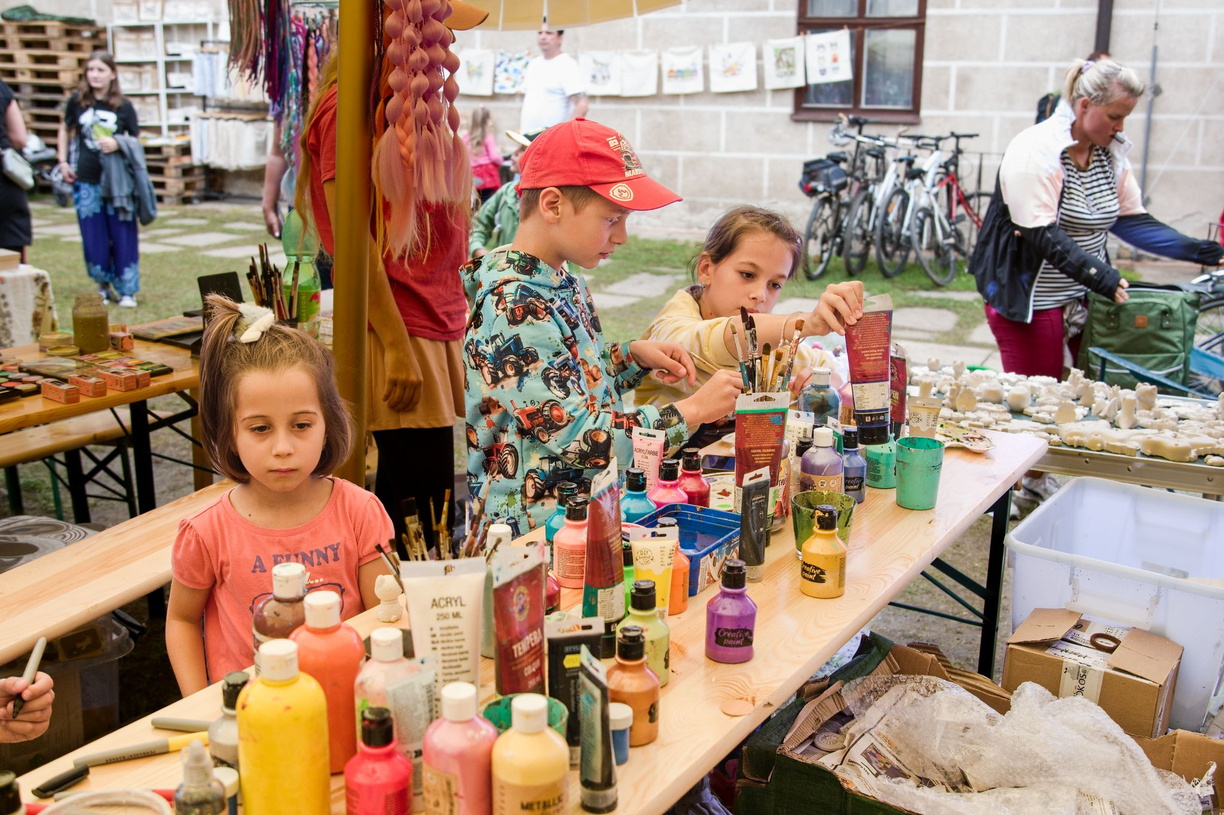 Za průjezdem výčepu Kozla, na dvorku telčské Základní umělecké školy – v takzvané Lidušce, se konají tvůrčí dílny, na kterých je možné si vyzkoušet různé tvořivé činnosti a odnést si díky tomu z Prázdnin v Telči pěkný dárek.