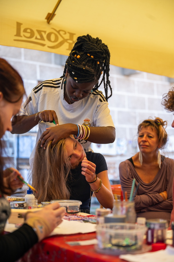 Dílny probíhají po celý festival podle počasí a možností „dílničkářů“.